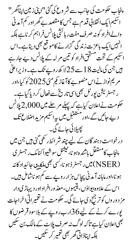 The Apni Zameen Apna Ghar scheme is more than a housing project—it is a pathway to stability, dignity, and a better life. By offering free plots and financial assistance for construction, the Punjab Government has taken a major step to end homelessness in the province.