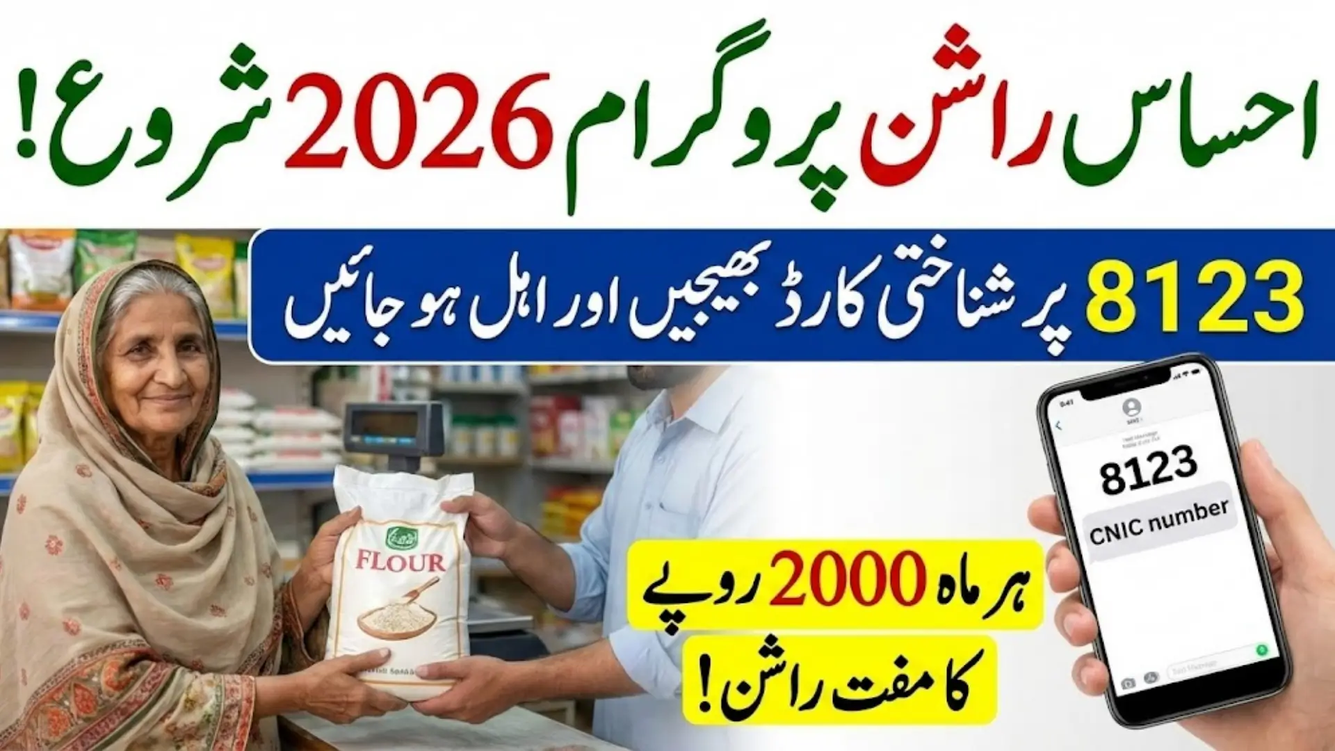 The registration process for the 8123 Ehsaas Rashan Program has been designed to be user-friendly, even for people with minimal literacy. The SMS-based registration allows families without internet access to check their eligibility and register using a simple mobile phone.