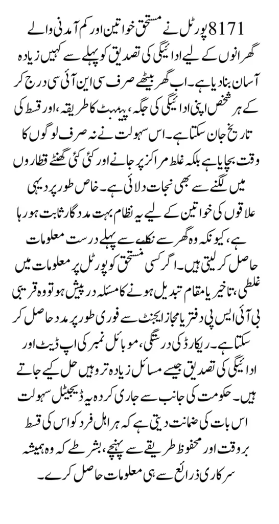 The 8171 portal offers a simple verification method that can be completed within one minute. Beneficiaries can access the system using any mobile phone or computer with internet access. Once the CNIC is entered, the system processes the information and displays all relevant details related to the December 2025 installment.