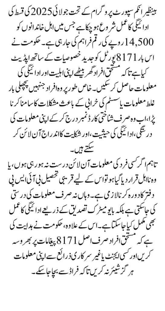 BISP 8171 July 2025 Payment Verification