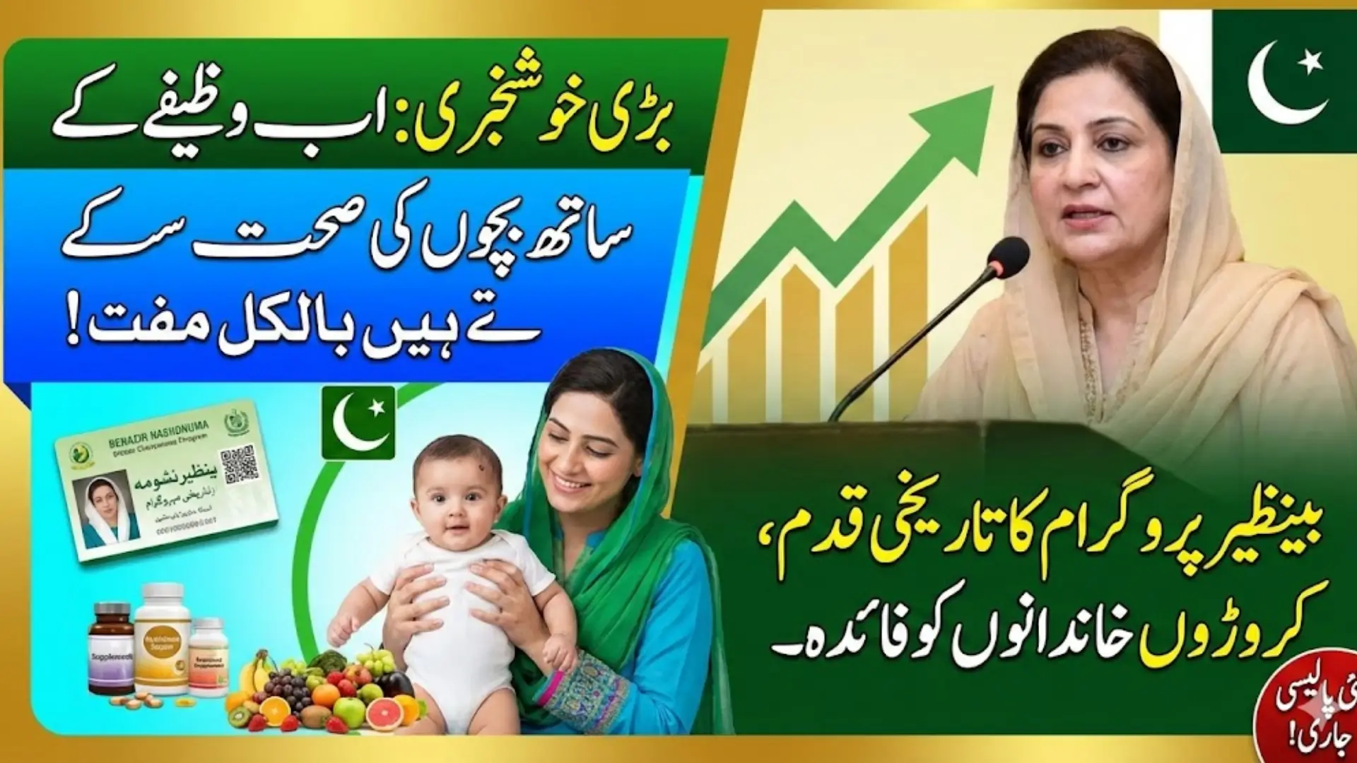 - Benazir Nashonuma: Provides nutrition supplements, health services, antenatal checkups, and behavior-change awareness to mothers and young children.