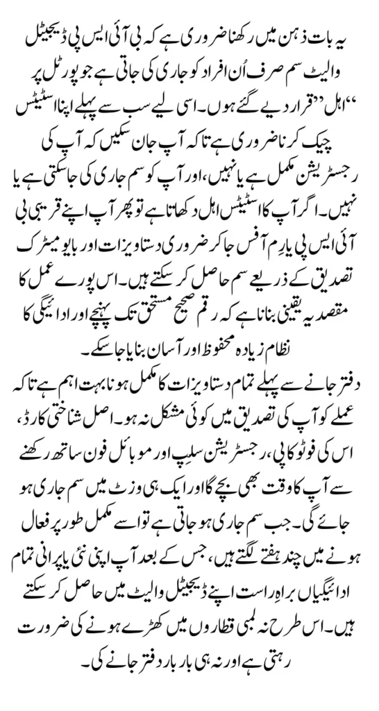 The BISP Digital Wallet SIM is an important step toward modern, secure, and convenient payment distribution. By checking your eligibility, preparing the required documents, and following the office verification process, you can complete the entire procedure smoothly. Once your SIM is activated, receiving payments becomes easier and faster than ever before. If you have not yet completed this process, visit your nearest BISP or RIM office today and finalize your Digital Wallet registration.