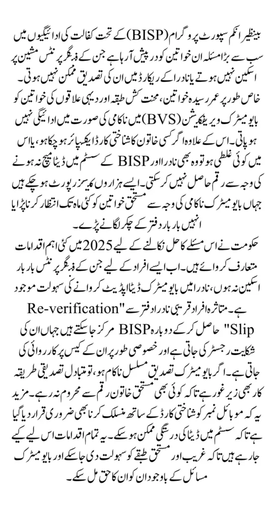 In 2025, BISP has rolled out new features and solutions to reduce biometric failures and make the payment process more accessible and transparent. The program now includes: