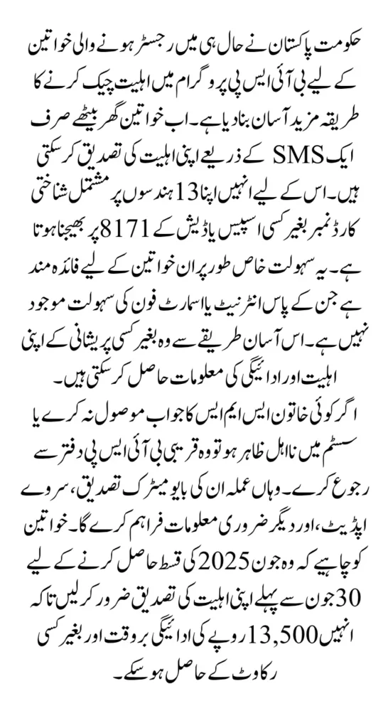 For women who have recently registered under BISP, confirming eligibility through the updated SMS system is the most effective way to ensure timely payment. The government has taken serious steps to improve the speed, accuracy, and accessibility of the system—especially to help new registrants in rural and underserved areas.