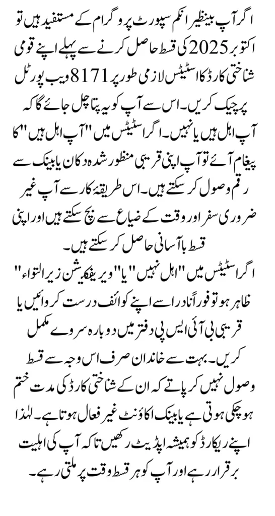 The October 2025 update of the BISP 8171 web portal has made it straightforward for families to check their payment status and understand their eligibility using CNIC. With payments now distributed through shops, banks, and digital wallets, the process is more convenient and secure than ever.
