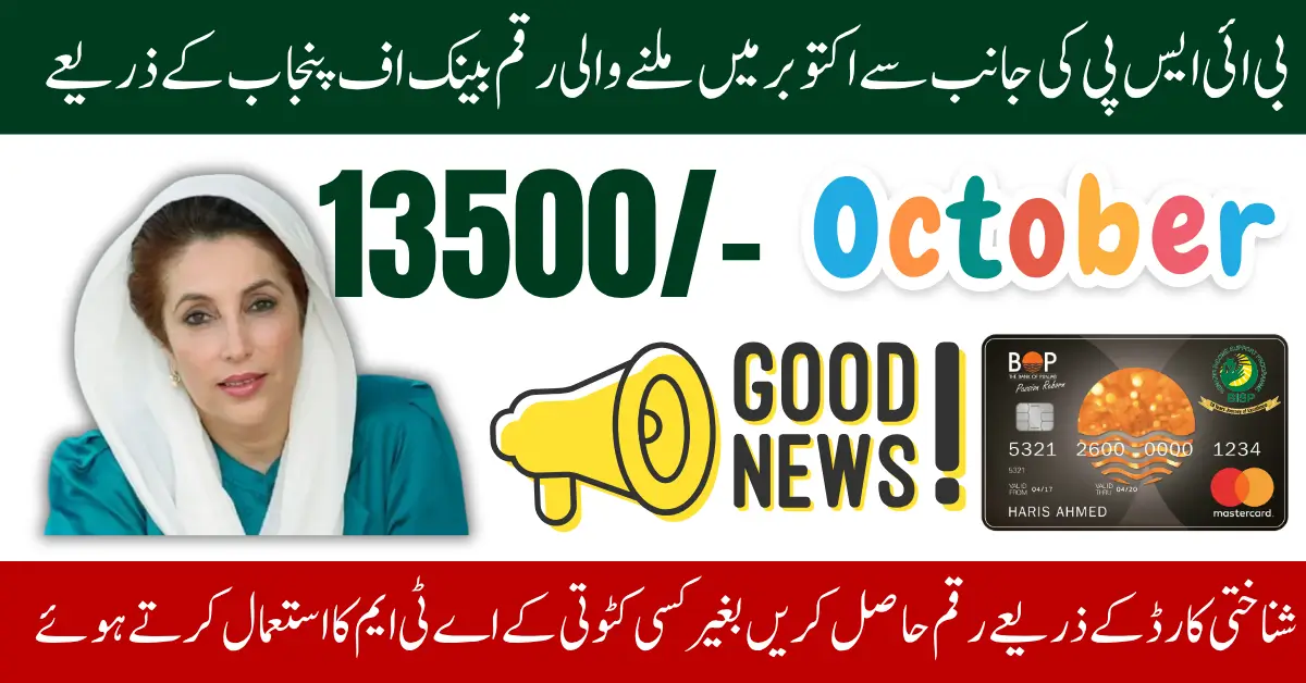 Once you have received your BISP ATM card, you can easily withdraw your October payment of Rs. 13,500 from any Bank of Punjab ATM. The process is quick and secure.