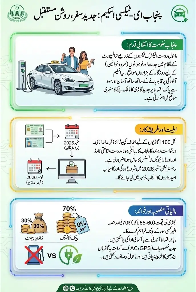 E Taxi Scheme Punjab E-Taxi Scheme 2026 is a major initiative launched by the Government of Punjab to reshape the province’s transport system through electric vehicles. This scheme is designed not only to control pollution but also to create thousands of employment opportunities for the youth.