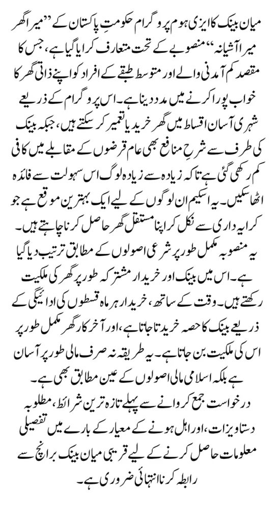 - Visit Meezan Bank Branch – Go to your nearest Meezan branch offering the Easy Home product. Request the Mera Ghar Mera Ashiana application form.