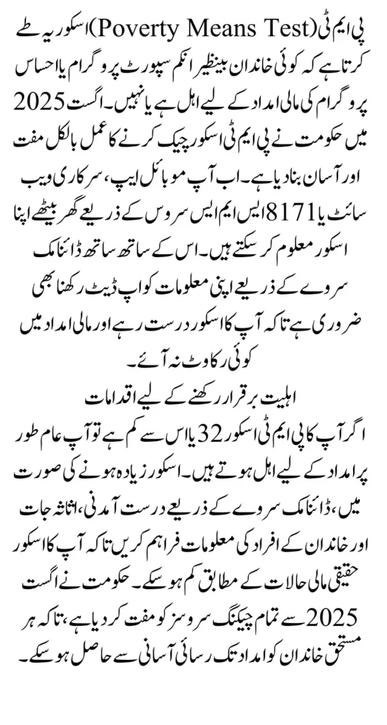 If you do not have access to the app, you can still check your PMT score using the official BISP 8171 portal or via SMS.