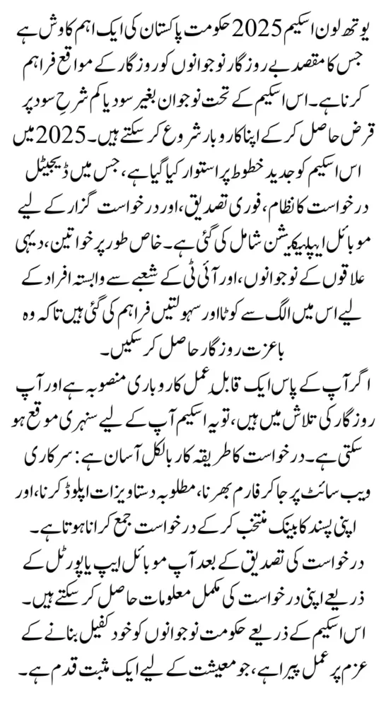 The Prime Minister’s Youth Loan Scheme 2025 is a financial empowerment initiative by the Government of Pakistan under the Prime Minister’s Youth Program. Its primary goal is to provide financial support to unemployed youth so they can start small and medium-sized businesses in different sectors, including agriculture, trade, manufacturing, and digital services. Whether you are a graduate with a startup idea or someone looking to expand a small setup, this scheme provides you the tools to succeed without burdening you with high-interest debt.