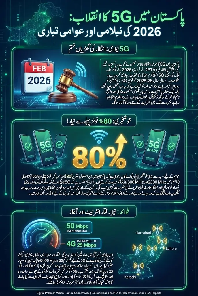 Pakistan is finally moving from discussion to action when it comes to 5G. After years of delays and speculation, the Pakistan Telecommunication Authority (PTA) is preparing to conduct the country’s first-ever 5G spectrum auction by the end of February 2026. According to officials familiar with the process, a major portion of mobile users may already be ready for this shift, as nearly 80 percent of mobile phones in Pakistan are said to support the key frequency bands required for 5G.