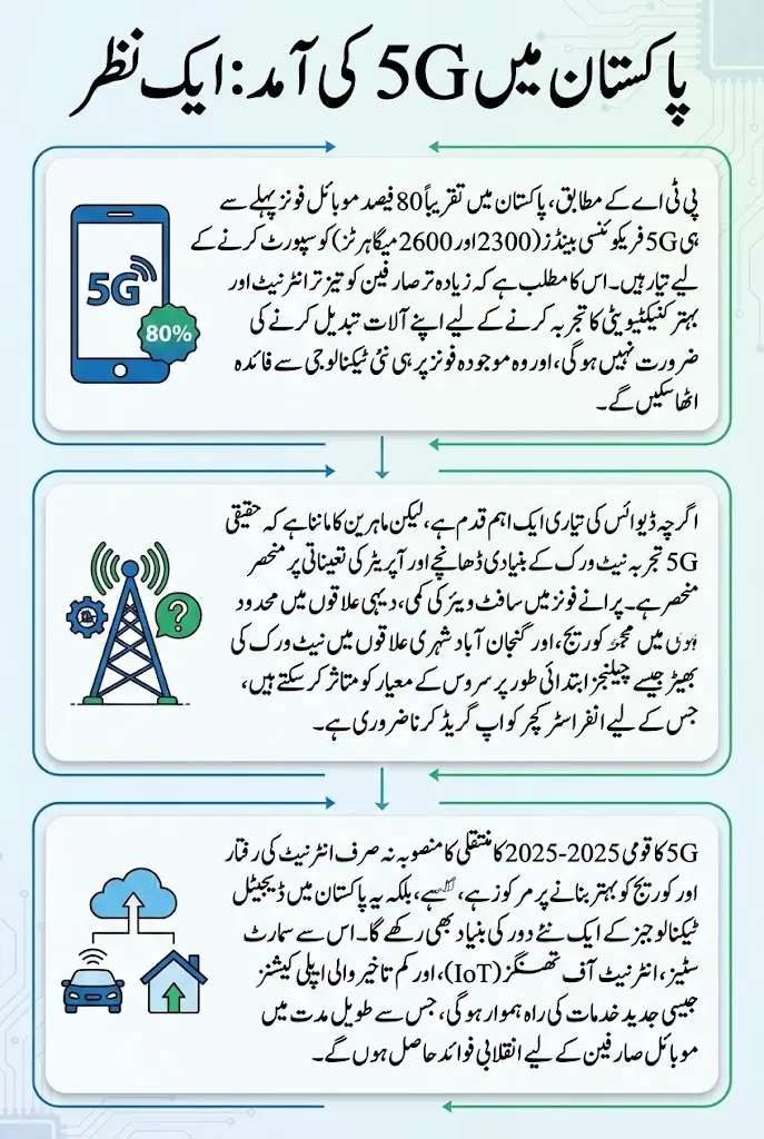 According to PTA sources, the majority of smartphones in Pakistan now support mid-band 5G frequencies. Devices compatible with 2300 MHz and 2600 MHz will be able to operate efficiently on 5G networks, providing faster download speeds, low latency, and a smoother mobile experience.