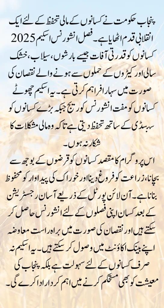 The Punjab Crop Insurance Scheme 2026 is more than just an insurance program—it is a promise of financial stability and security for Punjab’s farmers. By offering free coverage to small farmers and subsidized options for larger ones, the government is ensuring that agriculture remains a strong and sustainable part of the economy.