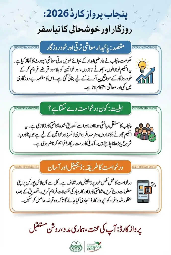 The Punjab Parwaaz Card 2026 is a well-structured, practical initiative aimed at empowering people who want to work and earn honestly. With interest-free loans, a transparent system, and broad eligibility, it addresses real financial challenges faced by ordinary citizens.