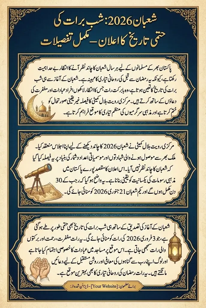 The official announcement regarding the Shaban moon and Shab-e-Barat 2026 has provided much-needed clarity. With confirmed dates, Muslims across Pakistan can now observe religious practices with confidence and unity.