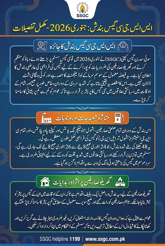 The SSGC gas suspension in January 2026 is a planned winter management step, not an emergency shortage. It mainly affects industrial users and CNG stations while aiming to protect domestic and commercial consumers.